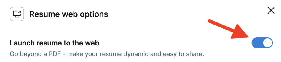 2. In the Resume web options modal, toggle the Launch resume to the web setting to the on position. This will unlock the resume web options.